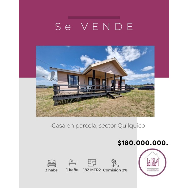 Se vende propiedad ubicada en Quilquico, parcela de 5.000 mtrs con casa de 182 mtrs2, papeles al dia casa con recepción municipal, para potencial venta con crédito hipotecario, a 13 km de Castro cerca de la playa del pueblito Weltun más conocida como isla paraíso.